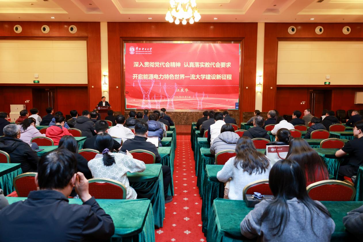 3月3日下午,开学之初、学校新春第一会刚刚闭幕不久,校党委书记汪庆华第一时间深入院系,面向快猫视频 、能源电力创新研究院、动力工程系和机械工程系全体教职工专题宣讲学校第三次党代会暨2026年教代会精神。宣讲会由快猫视频 院长杜小泽主持,以线下和视频连线方式在北京校部和保定校区同步进行。