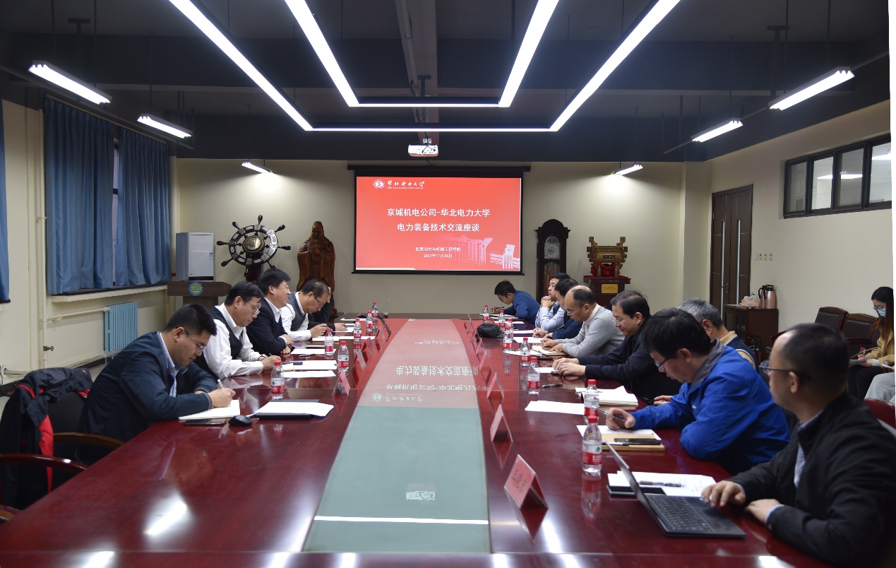 ,研究生院副院长张乃强、学院党委书记肖万里、院长杜小泽、副院长张永生、张宇宁、学科带头人柳亦兵、梁双印、王晓东以及滕伟教授(挂职京城机电控股有限责任公司科技信息部副部长)等参加了此次座谈,双方就电力装备技术合作开展深入交流。